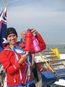 In preparation for the swim, both Chloe and Paul had put on about 15-20 kgs in extra weight. They called it their "Hypothermic Prevention Kit". Even as we were loading the boat with supplies, Chloe still managed to keep a mars bar in one hand at all times. Now that's my kind of training!