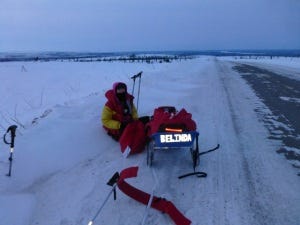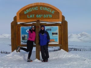 We raced together again in Nepal in 2011, where we shared a tent and a 'vomiting virus', and met up again in the (infamous) chalet in Chamonix with Nat last year. Like Nat, Belinda is also extremely humble, preferring to share self-deprecating stories about her mid-race bathroom incidents or mid-delusion conversations with mountains goats, rather than share stories of her incredible accomplishments. Like how she is a very active ultra competitor in some of the toughest races around the world, full-time mom, full-time professional, and often-time Ironman finisher. With a six pack. I've seen it - it exists. Belinda giggles as brightly as Nat smiles, so when I found out that the two of them were racing in the Arctic together, I knew that they would laugh themselves through anything. So now let me tell you about the race: the 6633 Extreme Winter Ultramarathon. This race is not for the faint of heart... or lungs, or legs, or mind. It is named "6633" because these are the latitude coordinates in minutes and degrees of the Arctic Circle. Athletes brave the snowy, icy, windy conditions of the Arctic Circle over a distance of either 120 or 350 miles, all the while dragging their sleds full of their supplies behind them. It is not a stage race like RacingThePlanet, which means that the clock is always ticking. Sure, you can stop to sleep in the snow, but you may either miss a time cutoff or end up missing some toes to frostbite. Your choice.