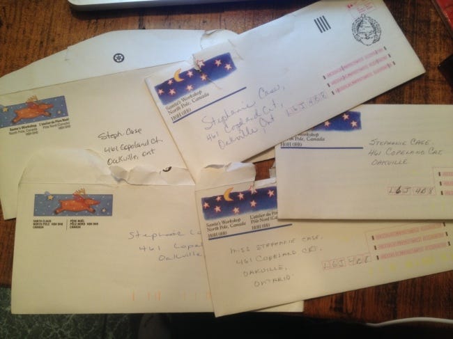 At last. My faith in Santa, and in Canada’s postal workers, was restored. I don’t know why it was so important to me that year, but it meant something that this person had taken the time to open my letter, respond to my silly request, and write back with a personal message. Gosh, was I ever precocious or what? I didn’t write any more letters to Santa after that year… but I’m thinking it might be time to revive the tradition. I’ve been feeling an absence of Christmas magic lately and so I’ve been trying to figure out how to get it back. Perhaps a letter to Santa is the ticket.