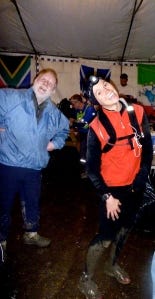 Ultrarunnergirl: I really just had a blast through the whole thing. I know that is annoying, but it was super fun. I finished my first lap in an hour, second in 1:02, third in 1:02, fourth in 1:06, and last lap in 1:05, so I was pretty evenly consistent. The last lap was the best because that was when most of the other runners were slowing down (including Speedy...wahahah) and I just kept trucking along. It feels good to get to that point :D What kept you going through the low moments of the race? Speedy: The lowest moment was definitely the entire last lap. I’m ridiculously competitive, so the idea of losing my lead was probably the single biggest factor in keeping going. I also broke the course down into 4 clear “stages” (road, mud, road, mud/homestretch) and gave myself 20secs speed-walk rest at the end of each “stage”. Ultrarunnergirl: Beyonce? How did you find the night running aspect? Speedy: On the first lap it was more like being at a roller disco than a night run cause I had the pace car right in front of me with a seizure inducing rotating light. I was mentally threatening quitting if the car was sticking around for the whole race, but fortunately (or unfortunately) he pulled off after the first lap.. Other than that night running is amazing because you can really get into your own little world. I’d say it’s harder to judge pace, but for me it’s definitely easier to stay focused, and not get caught up in what others are doing. Ultrarunnergirl: I really like running in the dark. It is easier to concentrate on your own race and get into the zone. It also makes the races seem calmer to me for some reason. However, it can definitely slow you down because you have to be more careful about your footing.