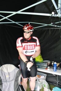 A TRIPLE??? I can never even heard of one. I needed to meet this guy. Immediately images of a 2 percent body fat, veins popping out of the arms, bulging calf muscle, hardened athletes came into my head. Scary. But truth be told, when Justin walked into the store a few minutes later, I thought he was one of the customers. In came this giant teddy bear of a man with a huge smile on his face.... although the biggest thing on him was definitely his enormous cankles. The swelling on Justin's feet and ankles would put my ultrarunning cankles to shame and it was the only piece of evidence on him that he had actually completed this crazy event. In fact, Justin looked so good and cheerful when he strolled in that if it wasn't for the cankles, I would have thought that the guys were pulling my leg.