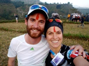 The views were absolutely stunning. Everything you imagine Nepal might be. Snow-capped mountains, pink blossoms on trees, stone villages, multi-coloured prayer flags... I was having so much fun I barely remembered I was competing.