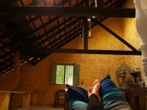 When I finally made it to the top, I reached the main paved road and headed right. The views were stunning. The road hugged a hillside to the left with a steep dropoff to the right, with hills and valleys of every shade of green rolling out before me. I could feel blisters forming, but they only served as a reminder that I had neglected running too long – I had let my feet get soft. I welcomed the hot spots on my feet and forged ahead. I passed the next village, which straddled either side of a waterfall that doused me in a cool mist. I picked up dogs and small children along the way as my pacers, who, as it turned out, could easily outrun my lumbering pace. A few monkeys cheered me on along the way as they swung from tree branch to tree branch over my head. I loved that first run. It exhausted me and energized me all at the same time, and I couldn't wait to get back out there for my second and third (which I did). I spent my mornings at the Samadhi Centre exploring the small villages and paths nearby, and my afternoons relaxing in my wonderfully meditative room. Each room at the Samadhi Centre is individually designed and loved, filled with beautiful antiques and unique pieces of furniture. Waruna suggested for me a room that was set at one far end of the property and which used to serve as his own home, before he moved elsewhere. In true spiritual fashion, he described the space as being like a “mother’s womb”. I would probably describe it more like a sacred space, a sanctuary, an escape… It was quiet and peaceful - the perfect place to stretch, unwind and relax, especially after my long runs.