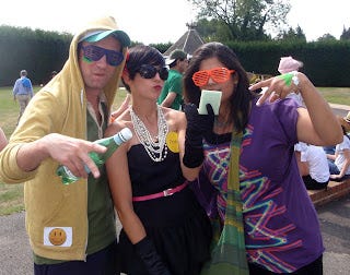 On the day of the outing, we all met at the Charing Cross rail station and boarded a train for Kent. This was the first glance we got of our competition's costumes...As you can see from the photo posted above, one of the other teams decided to go as techno/raver kids. If you knew these guys, you'd find this photo hilarious, trust me!