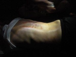 Then there was Paul from South AFrica who was in tent 16 beside me. I believe Paul has raced all 4 deserts in one year (amazing!!!) and is a VERY experienced racer. I'm not sure what the press releases are saying, but apparently Paul passed out on the course. Last night I heard him wretching outside the tent - it sounded like he was vomiting his internal organs. I ran over to the medical tent to alert them as Paul didn't seem to be able to get over on his own steam. I went for some treatment on my back myself (ewww, the chaffing...) and saw about 4 people hooked up to IVs. And then there was the puking into buckets. It was seriously intense. I didn't think my back was too bad until some of the other patients started making faces and taking photos. Hmm, maybe it was worse than I thought? My back was rubbed almost completely raw by my backpack. The doctor started to put neosporin on it, but then the flies swooped in... I guess I looked like fresh meat!! I begged the doctor to make sure he had picked all the flies out of my wounds before he put the tape on!