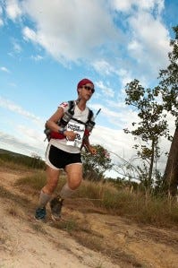 The terrain went straight uphill for a quite some time. The sweat poured down and dotted the coral rocks. It actually helped me figure out which path to take when scaling the boulders - follow the drips of sweat from the competitor in front!! Right hand up, left foot over, right knee down... it was a real exercise in scrambling. At one point I started overtaking some of the men - slipping and sliding over rocks and dirt the whole wway - and caught up to Lia! WHOA! All I could think was to savour the moment because who knows when it would happen again! A group of about 6 of us got into a pretty good pace and we called out the rocks, roots, and holes for one another...and more importantly, we picked each other up when one of us fell down. Which was often me. At one stage I hit my knee so hard that tears automatically came pouring down my face, but then my vision was blurred and it just caused me to trip again - twice! So enough of that, I thought, and I sorted myself out!