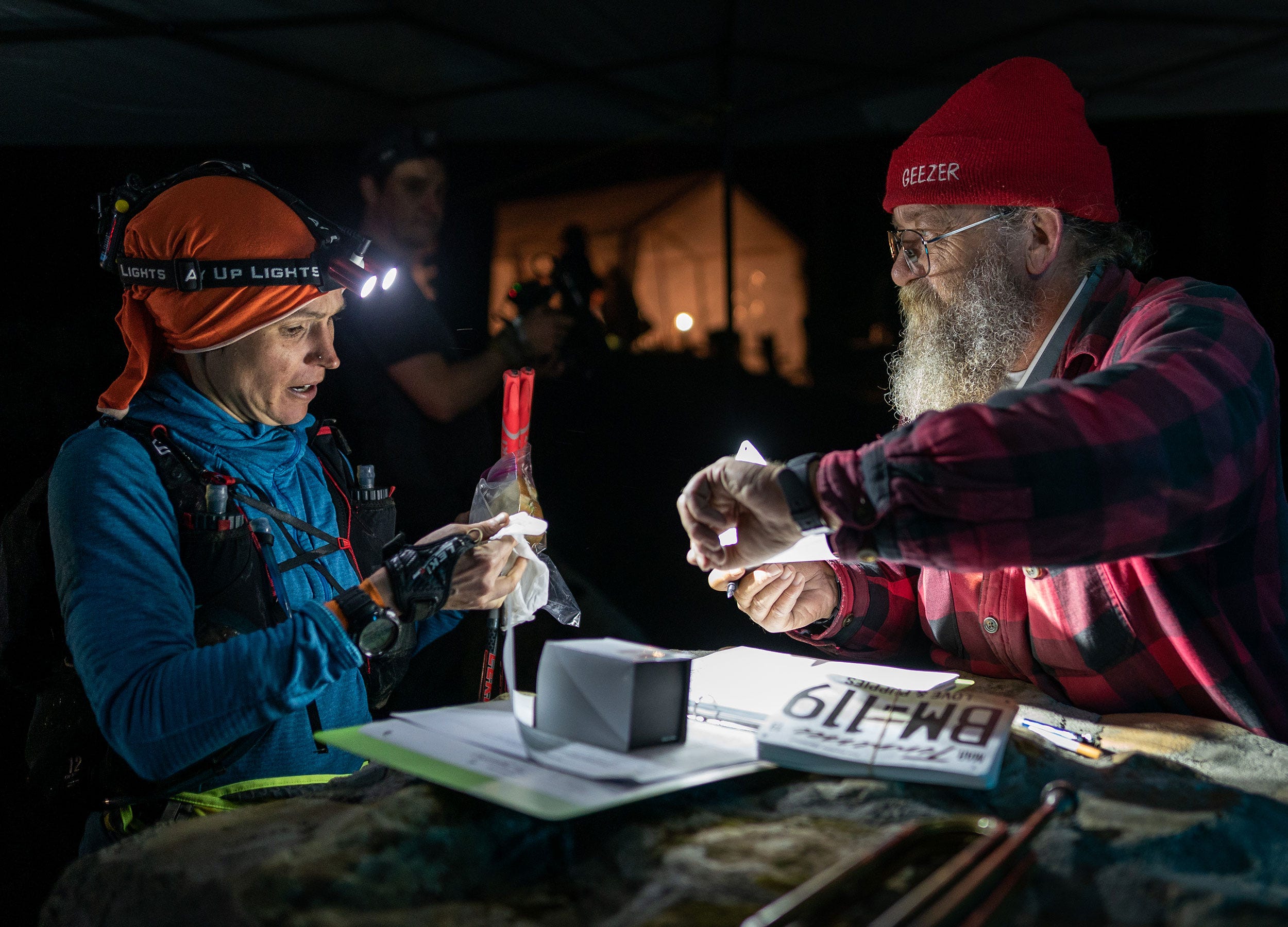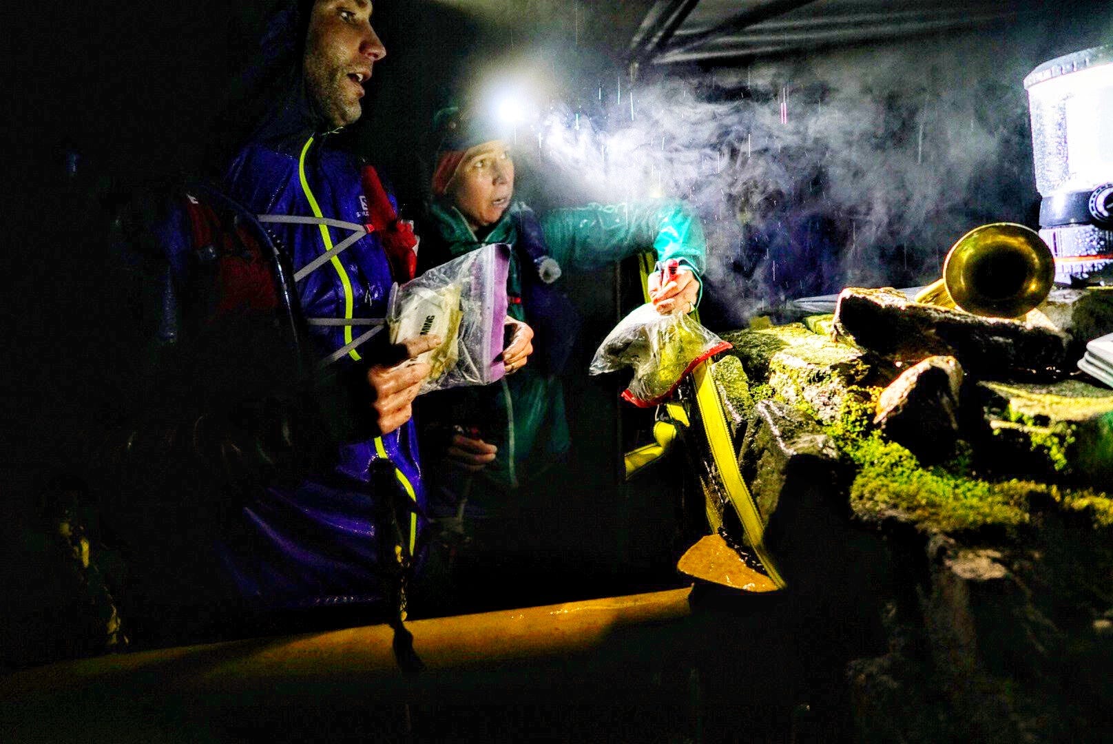 Photo credit: Howie Stern (Trail Runner Mag) "When are we meeting?" asked Nicky. She had asked if she could continue with me on the next loop. I've always thought it is better to just head out whenever you're ready - it is very difficult to coordinate the turnaround at Frozen Head - but I didn't mind if she (or Billy) wanted to stick at my pace. "Twenty minutes okay? Meet at five minutes to twelve? We need to get out in under twelve hours," I said. I had no idea what time it was in normal-world hours, but I knew my watch said 11:35 in Barkley time, and that was all that mattered. I plunked myself down into the foldable chair beside my tent, which was set up on Raw Dog's plot near the yellow gate (thanks to his quiet generosity). My brother, Ben, was right there. "Your soup is ready," he said, thrusting a styrofoam cup of ramen under my nose. "Careful, it's really hot." I wrapped my hands around the cup and breathed in the salty spices. My legs started to shake as I tried to go through a list in my head of what I needed to do in the next 20 - damn it, 17 - minutes. Food bag, waist torch, switch battery for head torch... eat sandwich. Get gloves? Have them already. Chafex. Change socks. Change head buff. A cameraman to my left asked if he could film my transition. Truthfully, I hate the media interest and presence at the Barkley. It's supposed to be the one time we have to be off the grid and, to me at least, media attention just doesn't fit with the spirit of the Barkley. But they had a job to do, so, whatever. "Maybe for just a bit?" I said in between spoonfuls of noodles, and about a minute before the noodles came up again. You're welcome, cameraman. "I think I need to put something warm on," I said to my brother as my body continued to shake. Without hesitation, he took the shirt off his back and threw it my way. I knew it wasn't actually cold, but with the adrenaline of the race and the calorie deficit, I was feeling chilly. "Should I bring an extra thermal?" I asked my Dad. "Everyone keeps complaining about the heat, but I really don't think it is that hot." We agreed it made sense to layer up. While the weather forecast had improved over the last few days, there was still a 20 percent chance of rain the last time we'd checked and the temperature was expected to drop. Better to be overheated than cold, I thought. With two thermals in my arsenal, a waterproof, and a long-sleeved shirt, as well as gloves and waterproof mitt-covers, I thought I was well-prepared. Little did I know that the forecast had dramatically changed and I was heading into winter conditions. I ran back to the gate with five minutes to spare, picking up a new bib - number 117 - for loop two, which was meant to be run in a clockwise direction again. Mig, Billy, Nicky and I set off together, but after a couple of switchbacks Mig dropped off. "I had a beer at camp and it was great!" he said. "But my stomach isn't feeling too good now. You guys go ahead." As the only veteran left in the pack, I started to worry. I was fine getting myself lost, but I didn't want the responsibility of leading the other two astray. Yes, Nicky and Billy were perfectly capable of running their own races, but the option of sticking with a vet is very, very seductive - I knew it well. I was happy for the company, but stressing internally about potentially screwing up their races. Anyway, there wasn't enough time to focus on the what ifs - I needed to focus on my compass and my surroundings. What would be, would be.