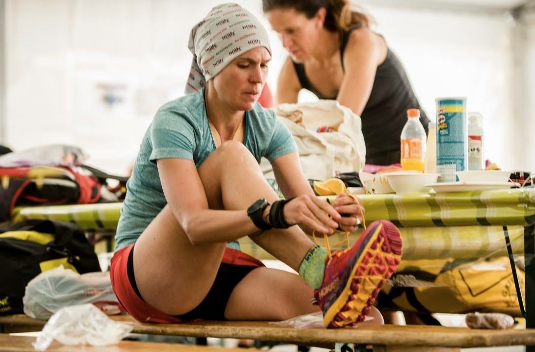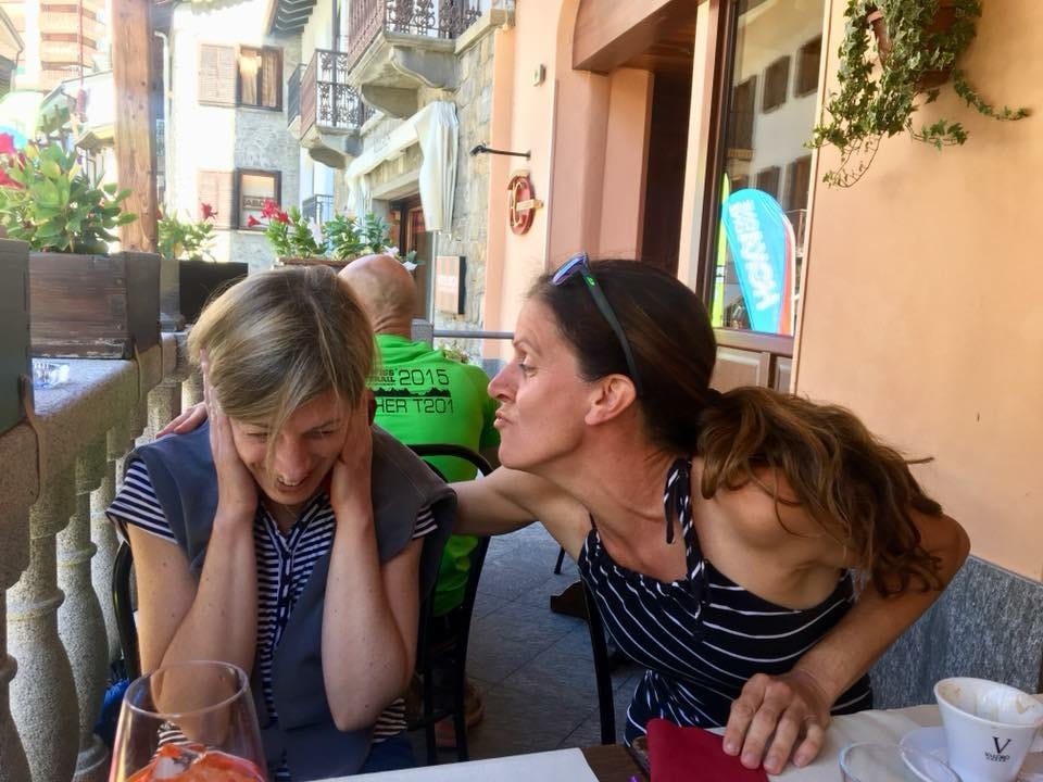 Amy ushered me out of the tent to a space outside where she had laid out my things. After running through the night, I was eager to change my clothes to prepare for the climb up Col Loson at 3300m. I whipped off my shirt and bra, unfazed by the bystanders as Leah fluttered around to try to hide my breasts from view. Within seconds I had whipped off my tights, providing Amy with an unobstructed view of my entire behind. "Are you sure you don't want to just go inside the hotel to change?" asked Leah, who was being introduced to crewing in the most painful way. Half naked, I gave Leah a look that said yeah right, and grinned cheekily as I flaunted my goods. “Oh this is special,” Leah said while laughing and rolling her eyes.