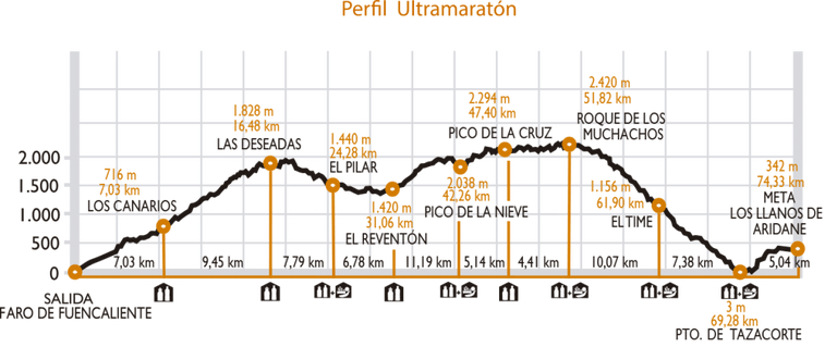 It is a 74km skyrace with 4350m of climb, following the GR131 trail on la Palma and connecting up with the GR130. Being a skyrace, there is a good portion of the race that runs above 2000m, offering incredible views of the island and even nearby Tenerife.
