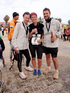 ... But I have to say, I wasn't the least surprised to see the Mosimanns -- both of them -- make a return appearance at RTP's Namibia race this May! Anyhow, I'm meeting up with Mark tomorrow night with my work colleague (as well as Jenna, Mark's girlfriend and also RTP veteran! The photo